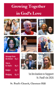 A pledge is made in recognition of God’s abundant generosity and to help grow St. Paul’s community and ministries in 2026.