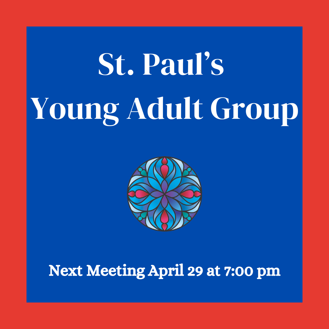 Young Adult Group: Next Meeting April 29 at 7:00pm